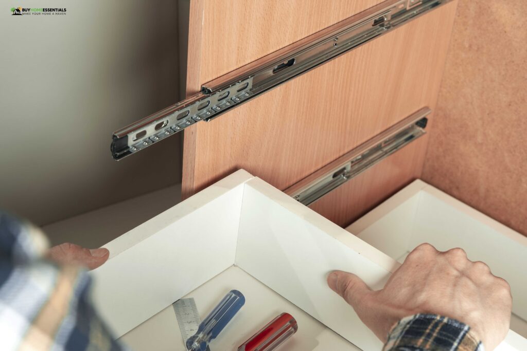 - Remove all items from the cabinet drawers first. It ensures a clean workspace and prevents spills or breaks.